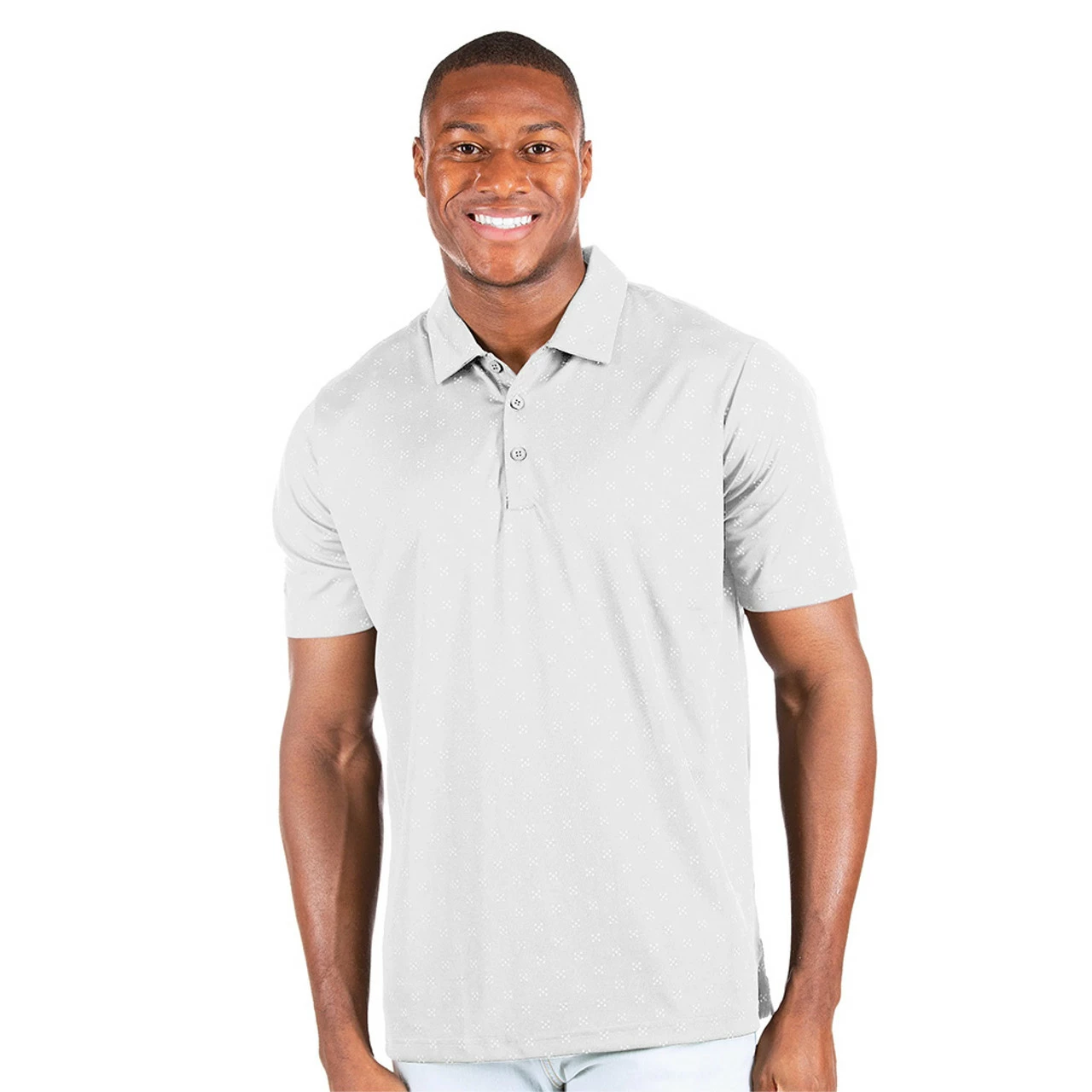 The Antigua Spark Polo features subtle, classy graphics with a traditional 3-button placket and self fabric collar, ideal for a round on the golf course and into the clubhouse.
