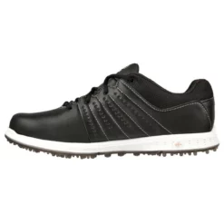 High fashion meets high comfort with the Skechers Go Golf Max Glitter. The breathable mesh upper features a speckled metallic shine that will make you stand out in your foursome. Lightweight and soft cushioning is delivered by the ULTRA FLIGHT and GOGA MAX insole. The spikeless TPU outsole provides durable stability and grip as you walk and swing.