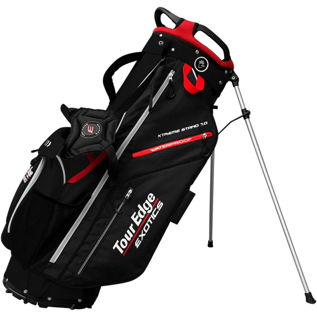 6-Pocket Construction The Tour Edge Exotics Xtreme 7.0 Stand Bag is designed with space for everything including a magnetic quick-access rangefinder pocket, a waterproof accessories pocket, an insulated beverage sleeve, and multiple other pockets for storing your gear, valuables, and necessities.Â